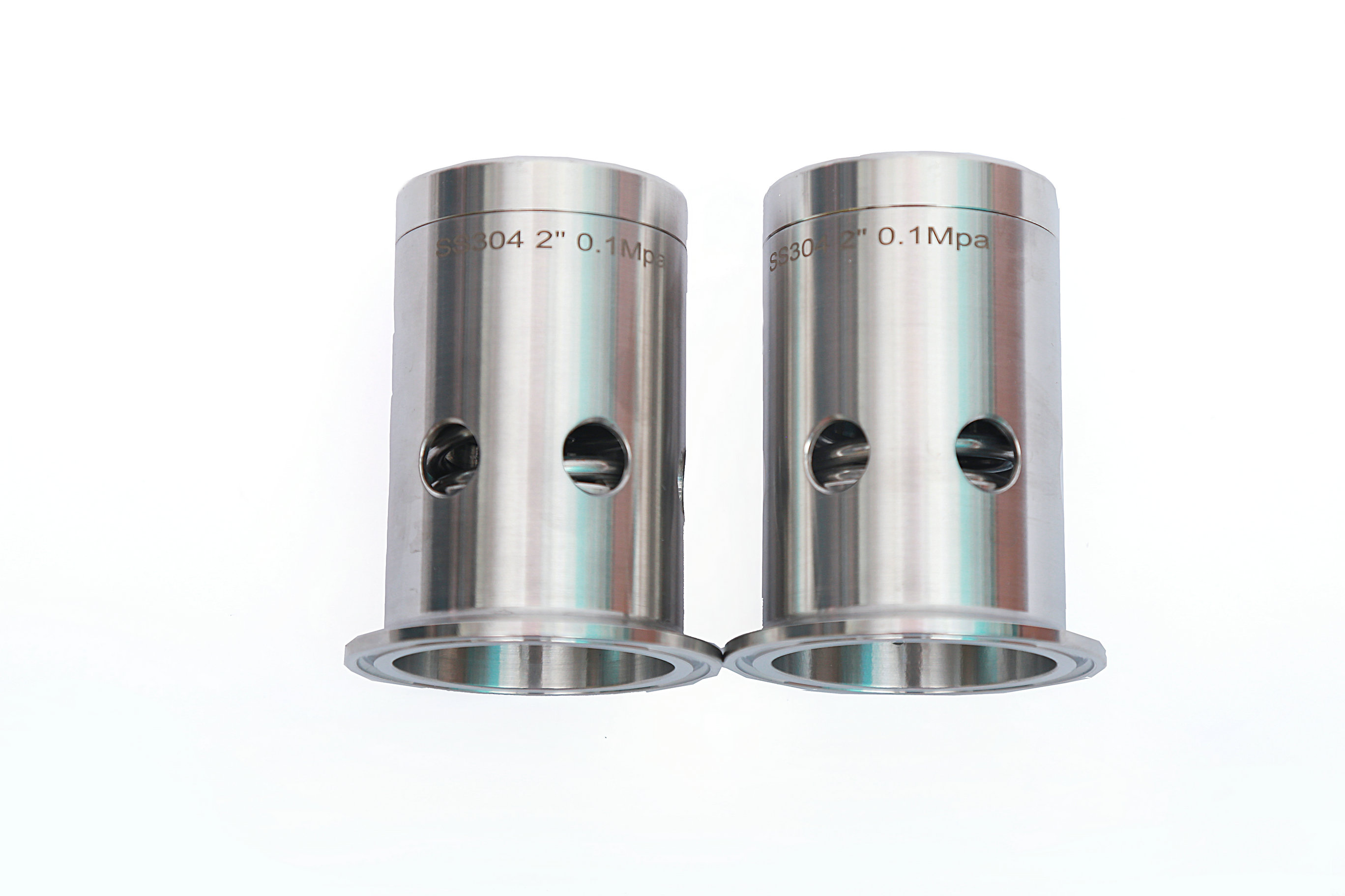 Introduction to functions and features The valve is used in pressure vessel piping systems Breathing valve has two functions, when the pressure is higher than the set pressure (standard 1 BAR) can exhaust, whereas closed, while vacuum piping system (standard 0.2 BAR) when the valve opens automatically, to ensure the safety of the equipment and related instrumentation protection, at the same time can also meet the demand in all kinds of production process, the valve in stainless steel material, health design, content with all sorts of food processing, beer, beverage and pharmaceutical and other industries.